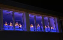 Nach vielen Jahren Pause war es in Aystetten endlich wieder so weit: 17 kleine Engel erhellten den jährlich stattfindenden Weihnachtsmarkt aus den beleuchteten Fenstern des ersten Stockwerks der Grundschule Aystetten. Ausgestattet mit selbstgemachten Engelskostümen verzauberten die Kinder der ersten Klasse die zahlreichen Zuschauer mit ihrer Choreographie und Gesang, ähnlich wie beim großen Vorbild, dem Augsburger Engelesspiel.